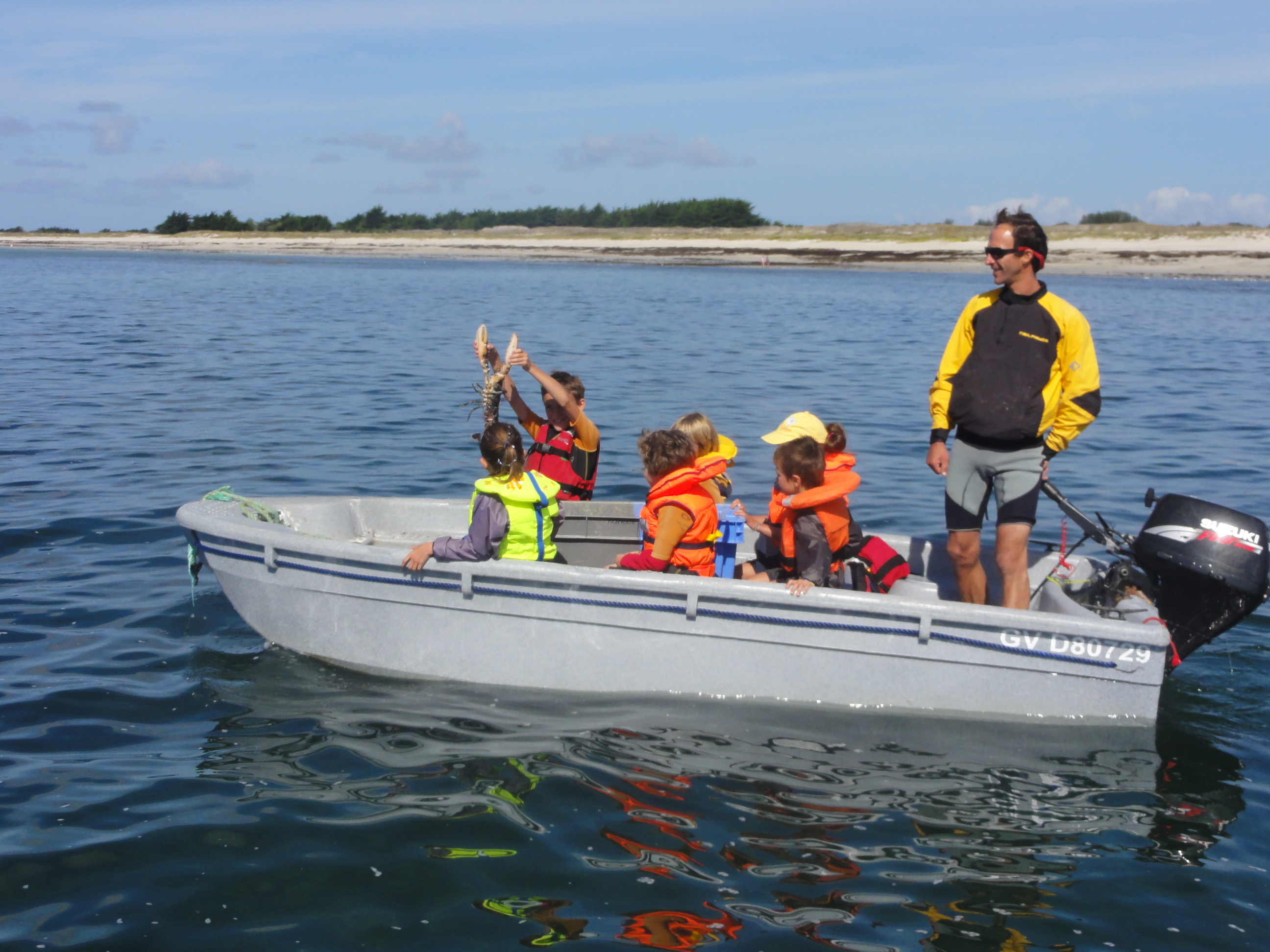 MATÉRIEL FOURNI : Bateau, Gilet, Casier, Filet, Ligne de Pêche, "Coquillage et Rocher"